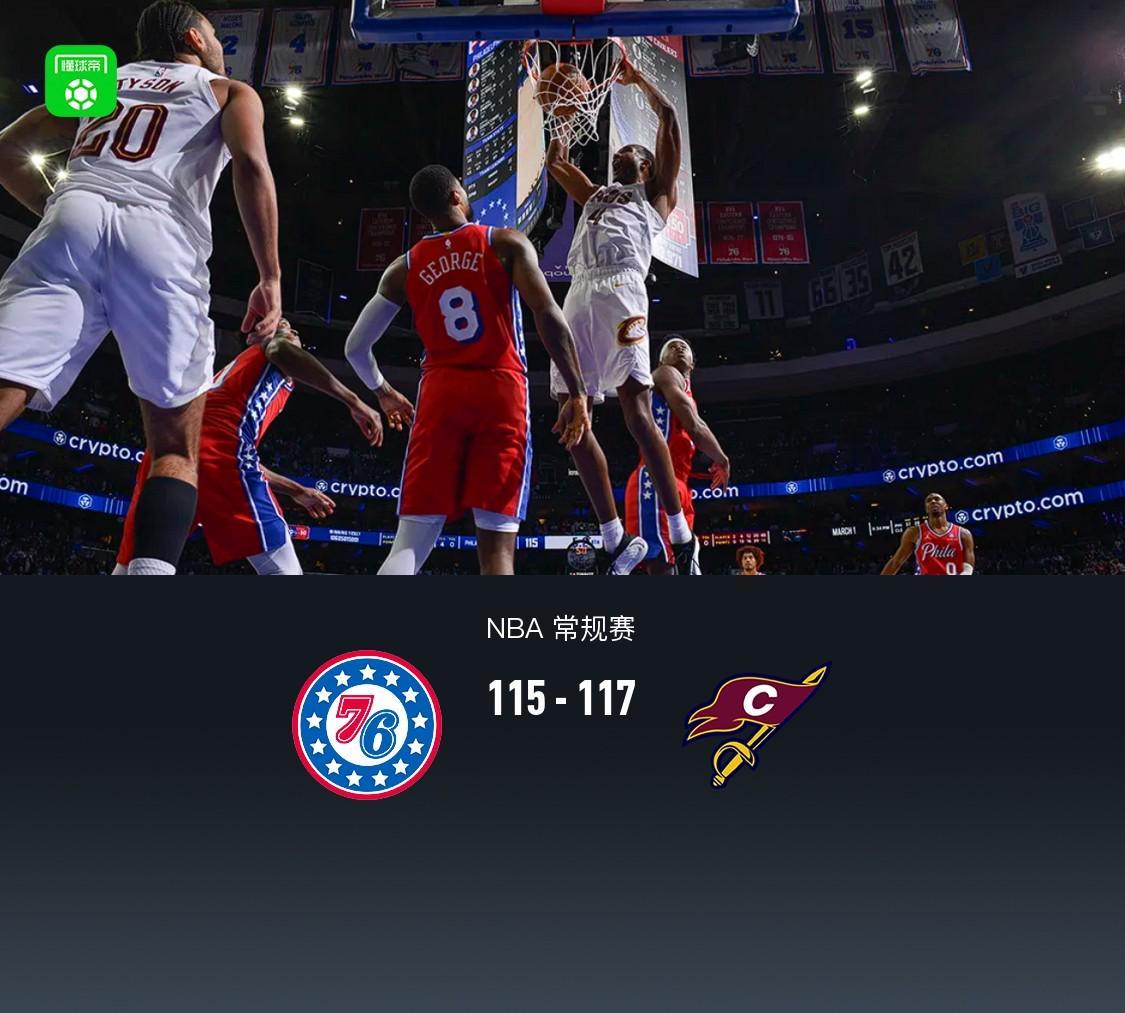北京时间1月17日NBA 常规赛,费城76人对阵克利夫兰骑士。首节双方紧咬比分,随后两节比赛76人保持7分上下领先,半场76人62-55骑士,三节结束76人仍领先7分,末节双方相继打出高潮,比赛最后3分钟76人仍领先7分,但随后骑士泰森领衔反扑反超比分,最后关键时刻骑士莫布利准绝杀,最终骑士117-115险胜76人。费城76人恩比德33分5板3助,马克西22...